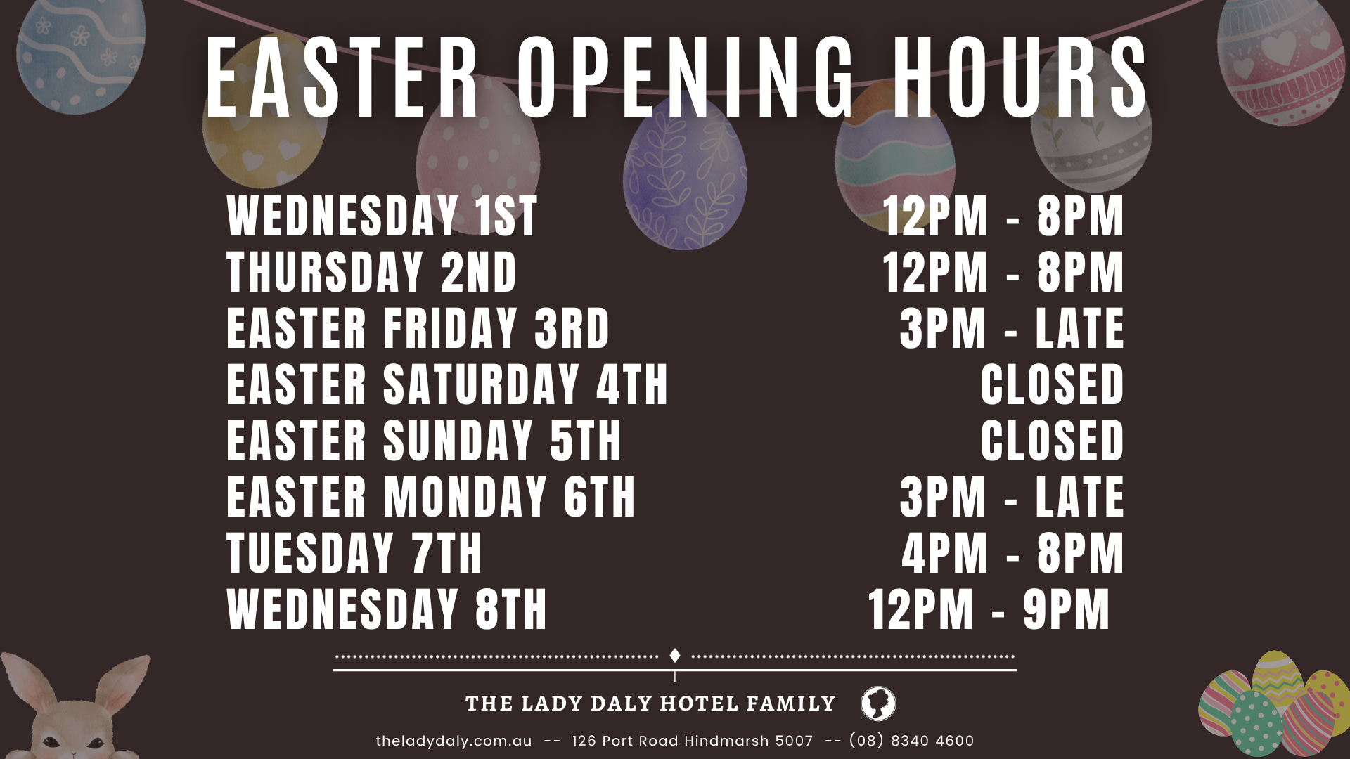 Let The Lady Daly be your new sanctuary minutes from the CBD. Only seconds from the Adelaide Entertainment Centre, Tram stop, Coopers Stadium, the Gov, and complete with surrounding street parking, we are the go to pub in a growing area.